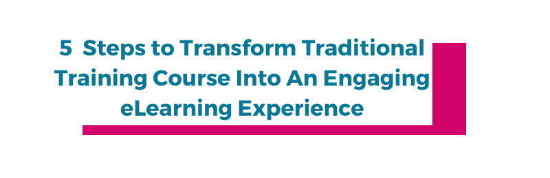 5 Steps To Transform Traditional Training Course Into An Engaging eLearning Experience By Ilhan ChawlaPosted on January 30, 2020Posted in Infographic